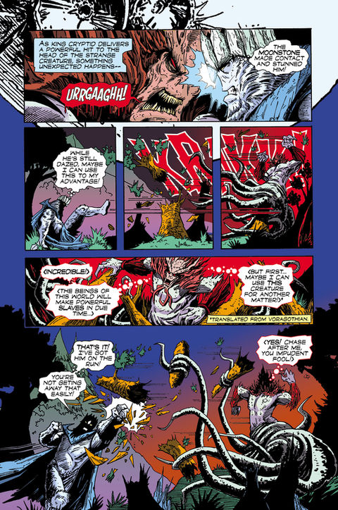 Trapped on an alien world, KING CRYPTID must join forces with KYRON MORVEL to stop a cosmic threat in the epic sci-fi fantasy crossover adventure... BLOOD MOON!